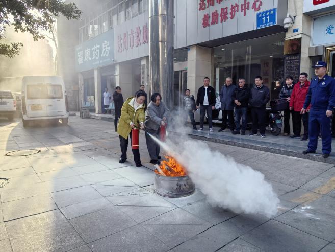 应急演练环节,模拟站内3楼救助生活区因插座过载起火,烟感报警骤响,橙色烟雾迅速弥漫。站安全领导小组立即启动应急预案,疏散引导组迅速到位,引导服务对象弯腰低姿、湿巾捂鼻,沿安全通道有序撤离;灭火行动组携器材赶赴起火点实施初期扑救;心理疏导组同步安抚服务对象情绪……随后,专家现场组织灭火实操,参训人员轮番上阵,对准火源根部喷射,干粉腾起间,技能入心间。